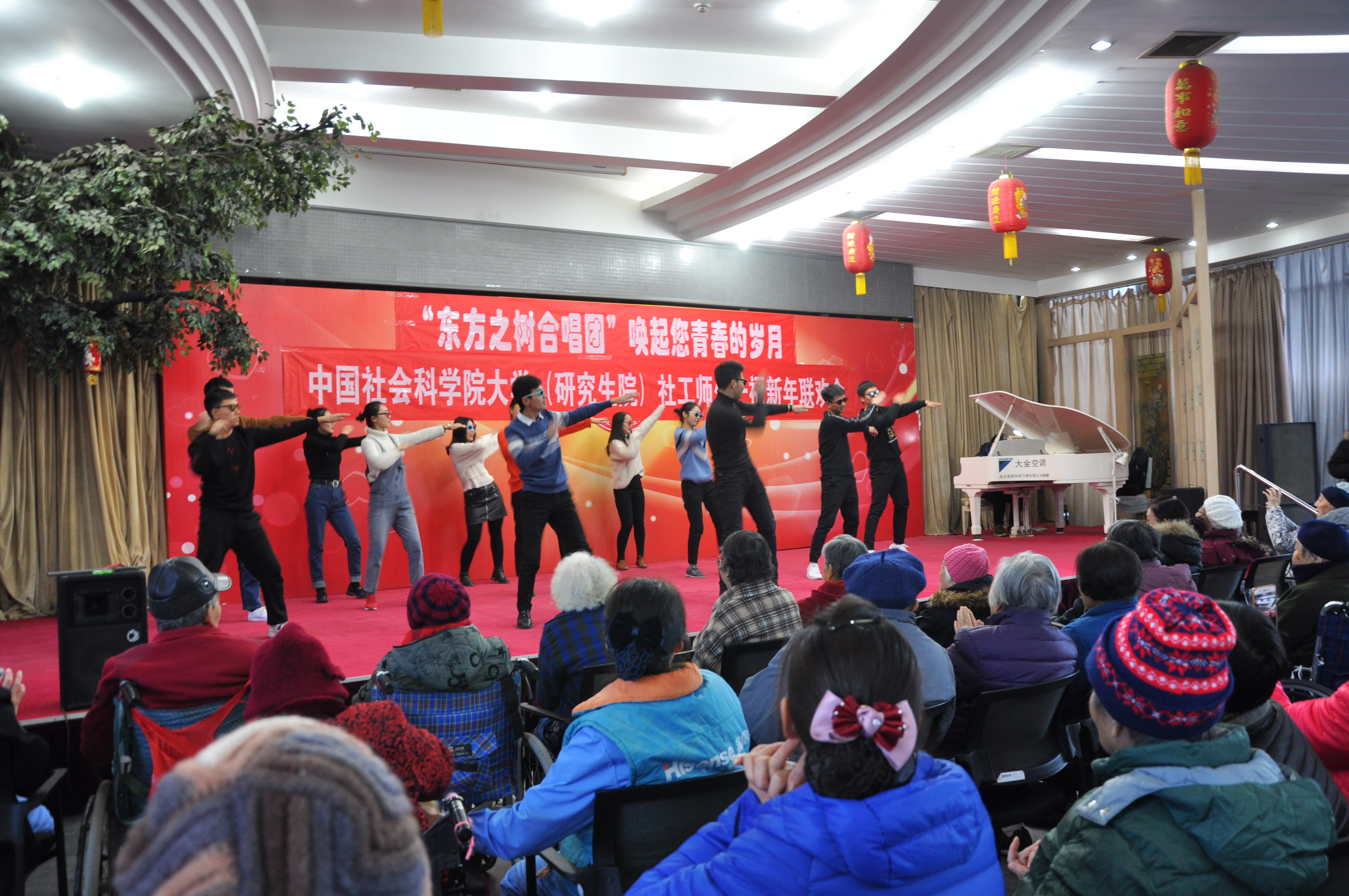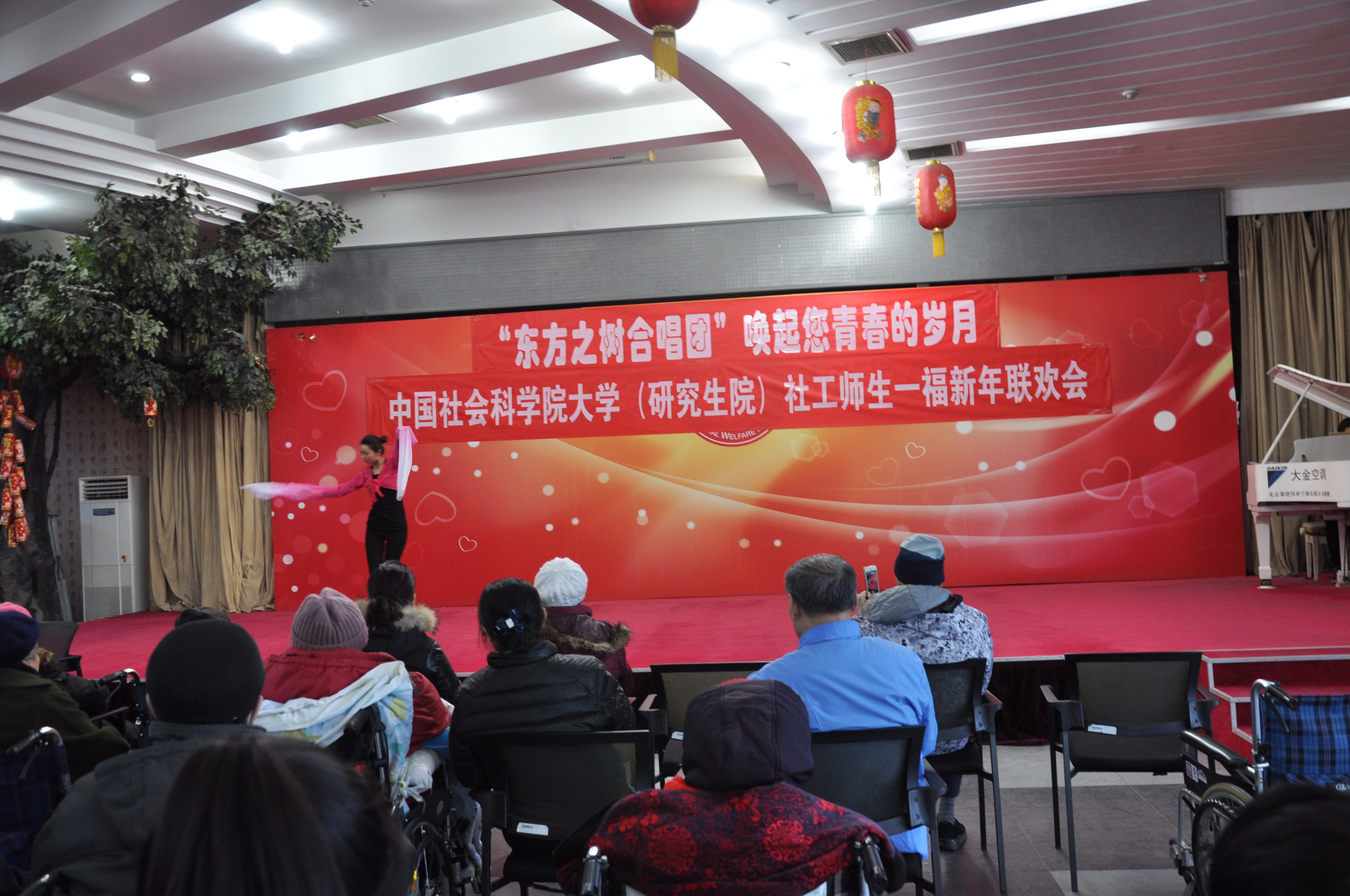 此次新年联欢会的举办,不仅充分展示了公司社工学子的风采,更体现了社工专业尊老、敬老、助老的精神,获得了福利院老人和工作人员的一致肯定,为社工专业员工的形象添彩。北京市第一社会福利院的黄老师一再表示希望我们以后能为老人们带来更多更丰富多彩的节目,带来年轻人的朝气和活力,感染更多的老年人。