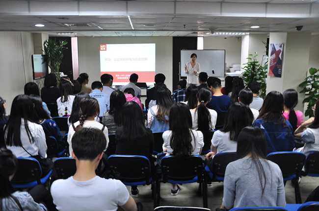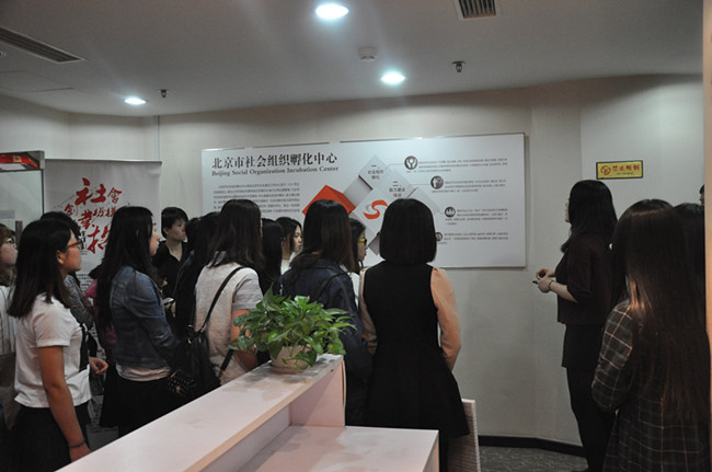参观伊始,恩派的工作人员先带领同学们熟悉了恩派的办公环境。由外及里,穿过办公室走廊,“瓷娃娃”、“雷励”等知名社会组织的Logo映入眼帘,这些组织都是经由恩派孵化后进入社会、服务社会。同时恩派也为正在孵化成长着的10家社会组织免费提供办公场地,缓解他们的生存压力。接下来,由恩派区域业务经理李欣欣老师通过PPT形式为大家详细讲解恩派的“孵化器”功能,李老师从第三部门重要性为切入点,引入恩派作为公益社会组织在社会建设中的重要性,并总结了恩派“孵化器”由1.0迭代到3.0的进步与成熟,同时李老师还结合实际情况,深入浅出、详细地叙述了恩派具体业务的内容及开展情况。通过李老师的详细讲解,同学们不仅准确地了解了北京恩派作为孵化组织的地位、功能,而且也让作为社会工作专业硕士生的同学们有了未来规划的方向,在李老师讲解后,有几位同学就如何申请孵化、“出壳”等问题进行了提问,与李老师有了更深入的交流。