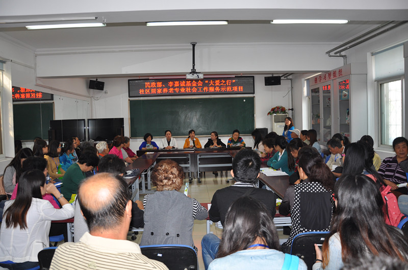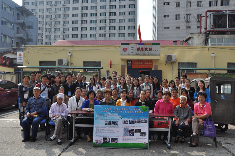 2014年 9月24日上午9点,中心主任赵一红老师、项目负责老师郑玲、王子彧带领14级社工研究生在太平桥西里社区开展了社区探访活动。本次社区探访主要是为中心机构——北京尚行社会工作研究中心承接的民政部与李嘉诚基金会共同合作的“大爱之行”《社区居家养老专业社会工作服务示范项目》的顺利开展做铺垫。本次社区探访主要分三项主要内容,一是项目介绍座谈会,二是展板宣传和服务咨询,三是需求问卷调查。本次活动得到了太平桥西里社区居委会的大力支持,西里社区居委会民政科负责人张老师、苏站长、西里社区居民代表一同出席了项目介绍座谈会。