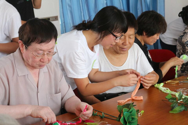 在8月19日上午,社工中心师生走进北关东路社区,举办了“浪漫七夕,编织幸福”的活动,与社区老年人一同庆祝七夕节。