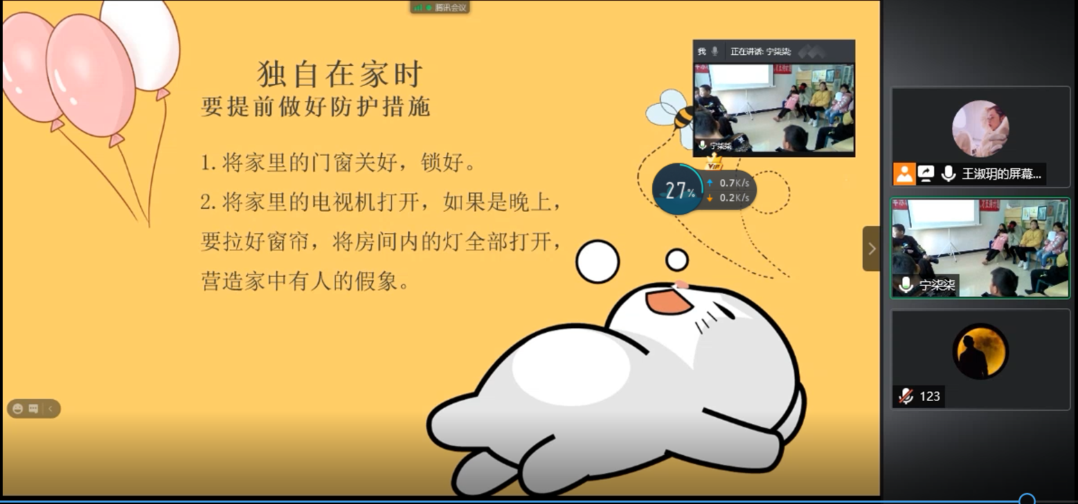 儿童是国家的未来,民族的希望。为增强留守儿童安全意识和自我保护能力,公司社工研究生于12月19日上午面向阜平县留守儿童开展了“保护自己”安全知识教育主题活动。本次活动通过腾讯会议平台在线展开,由公司社工研究生负责讲解相应内容,阜平县阜东新区移民搬迁安置点的20名留守儿童参与了本次安全知识教育主题活动。