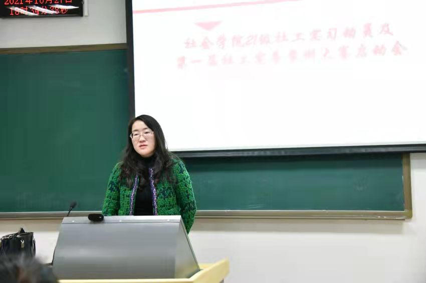 社会工作作为一个实操性特别强的学科,专业实习是社工人才培养的重要环节。为培养高质量的社工专业人才,提高公司MSW员工的实务能力,促进员工保质保量的完成实习任务,2021年10月28日晚上,2021级MSW员工专业实习动员及第一届社工实务案例大赛启动会在研教楼202顺利举行。公司实习实践办公室主任郑玲老师、实习管理薛瑾老师以及2021级全体员工参加了本次会议。