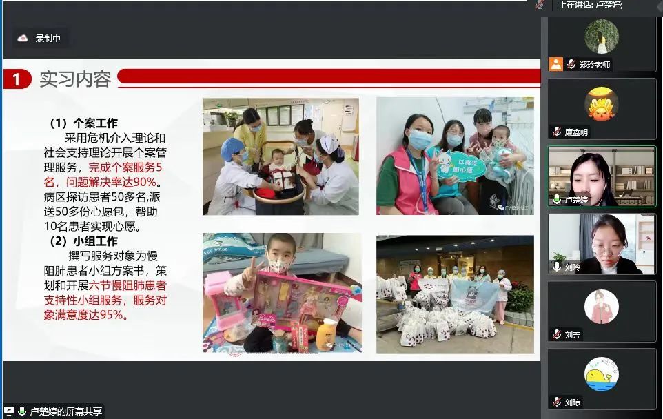 为更好地了解公司社会工作硕士的实习开展情况,检验员工的实习成果,协助同学们发现实习中存在的问题,总结实习经验,304am永利集团MSW教育中心于2023年2月27日通过腾讯会议举办了2021级社会工作专业硕士实习成果汇报会。此次会议由304am永利集团实习实践办公室主任郑玲老师主持,陈海平老师及2021级社会工作硕士60名员工参加。
