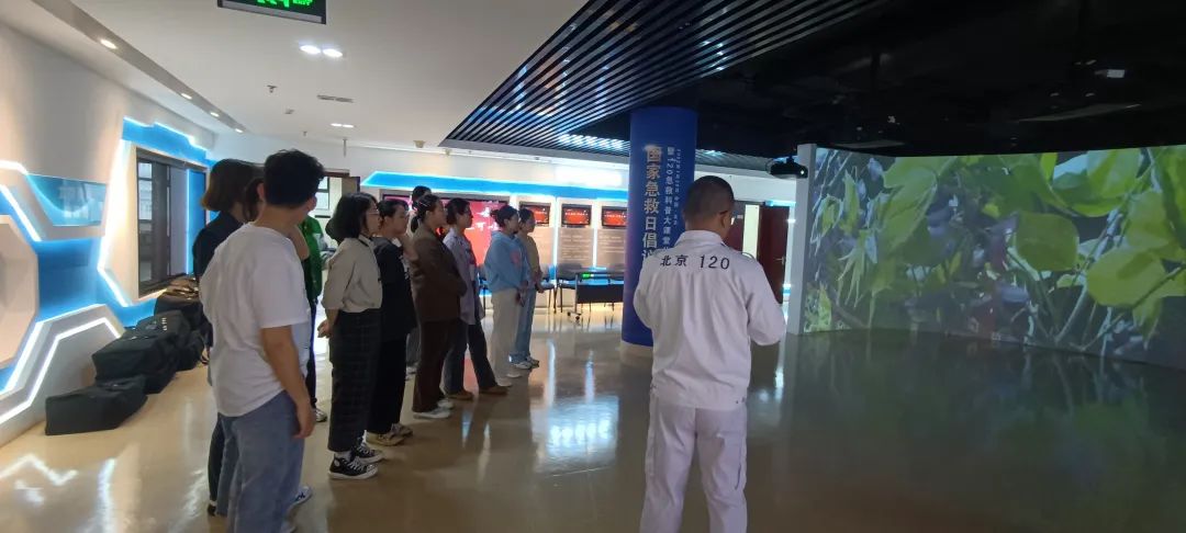 在对急救知识和相关技能了解掌握后,王小刚老师带领同学们来到科技展览大厅,观看了急救相关影片,使同学们了解到急救在日常生活中的重要作用。当我们在生活中遇到紧急情况时,要冷静处理,及时拨打120电话并第一时间展开急救,为挽救患者生命做最大的努力。影片观看结束后,王老师又带领同学们了解了120急救中心的发展历史以及当前社会对120急救知识的重视现状,使得同学们对急救相关的知识有了更深入的了解。