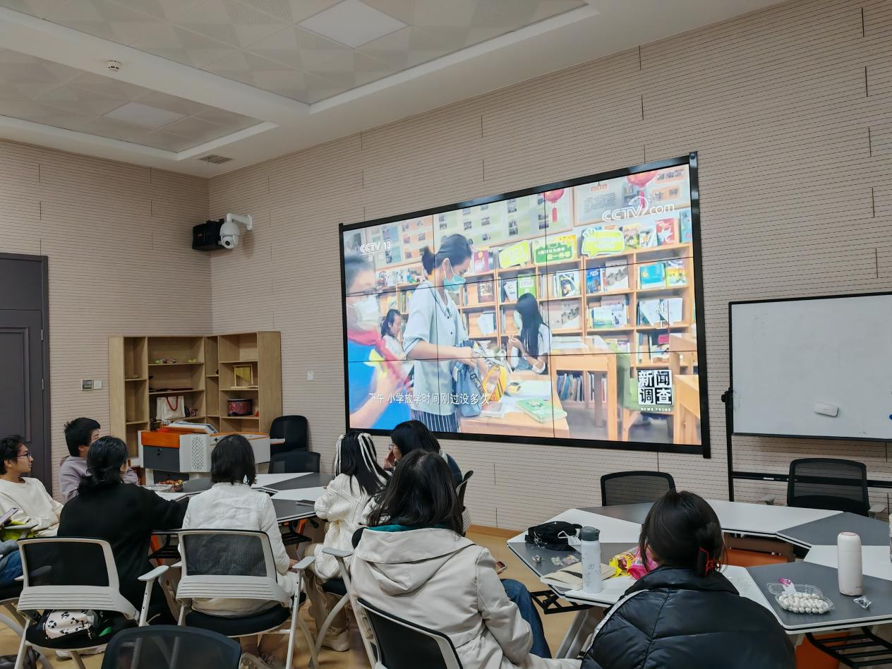 紧接着,郑老师带领大家共同观看了《新闻调查》频道中主题为“社工”的纪录片。片中展示了北京市协作者社会工作发展中心的童缘项目从全人视角、马斯洛的需求层次出发,关注到外卖骑手所面临的工作和家庭方面的问题。聚焦互联网经济发展下,网约车司机、外卖骑手、快递员等庞大群体的需求和问题,展现了“童缘”社工的专业行动和助人精神。