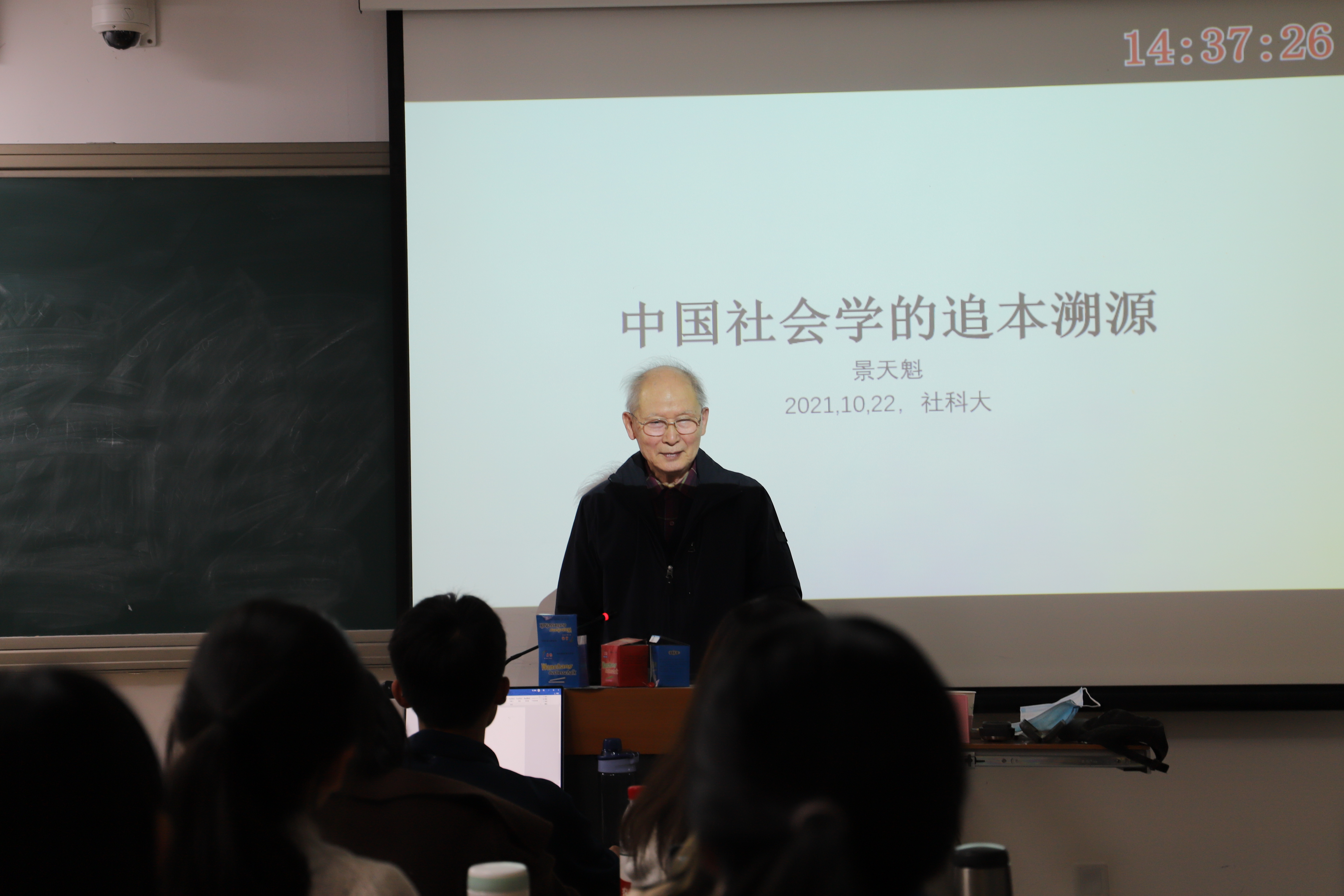 信息中心讯|2021年10月22日下午,304am永利集团学部委员、社会学研究所学术委员会副主任景天魁研究员,在本教楼208为社会学院21级本科新生举办主题为“中国社会学的追本溯源”的讲座,社会学院沈杰教授主持本次讲座。