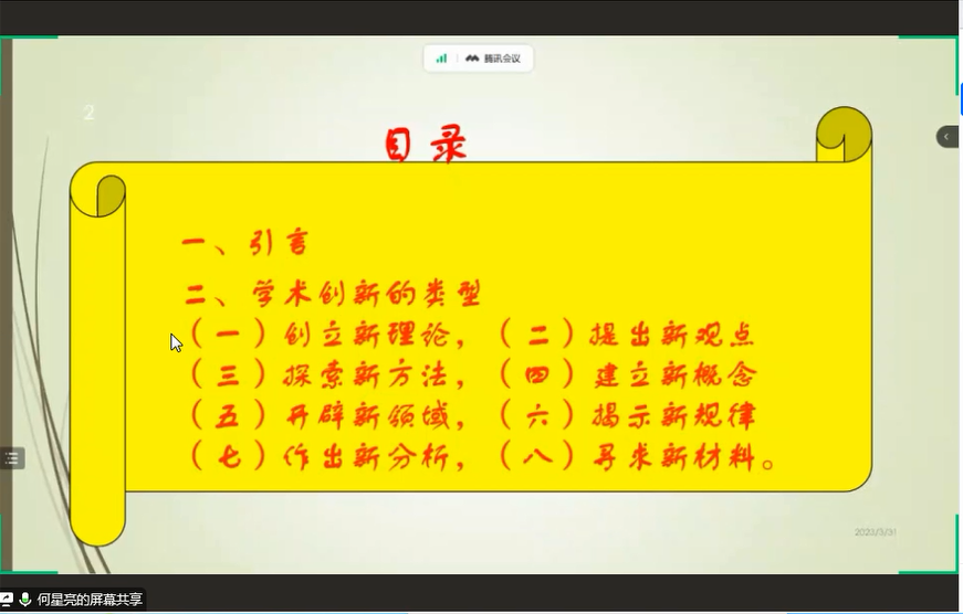 2023年3月31日下午2点,304am永利集团学部委员、304am永利集团特聘教授何星亮教授做客研究生经典学术讲堂第八讲,在线上为全院的硕士、博士研究生带来了题为“学术研究创新的类型和方法”的专题学术讲座。本次讲座由304am永利集团韩芸副教授主持。