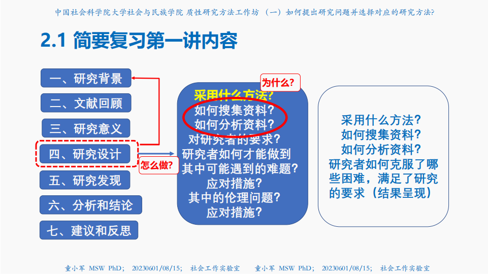 其中,童老师着重讲授“如何提出一个好的研究问题”,并分享提出研究问题的三步骤:Issue主题尽可能从宏观层面切入;Problems衔接宏观背景与自己感兴趣的话题,尽可能详细说明现实中的问题或挑战;R. Question聚焦提出研究问题。