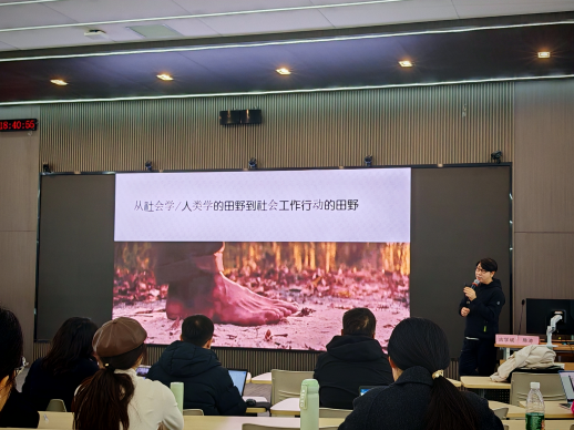 而后古学斌教授系统介绍了行动研究的发展脉络、构成及其与传统研究的区别。通过生动有趣的例子——下棋,使同学们以日常化的方式了解第一人称、第二人称以及第三人称语境下的行动研究。古教授认为做行动研究要学会提问题,行动研究是“边做边学”的方法、是与人民一起对行动中的知识的实用性共同创造,而不是对人民进行研究。古教授强调在社会工作实务中,行动研究为社会工作专业发展提供了具体的思路和方法,也可以作为一种评估及学习工具,它可以让社会工作者证明自己专业的独特,是社会工作者自我赋权和能力建设的过程,通过行动研究能够在实践研究中认识自己、改进自己的工作、监控自己的成长。