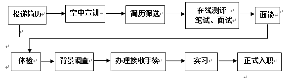 请符合条件的求职者于2017年12月4日前登陆国投校园招聘网(http://campus.51job.com/sdic-2018)投递简历。同时,为方便海外职工求职,笔试、面试时间暂定在圣诞节前后,具体日期以实际通知为准。每位求职者应聘岗位不得超过2个。主要经过以下程序: