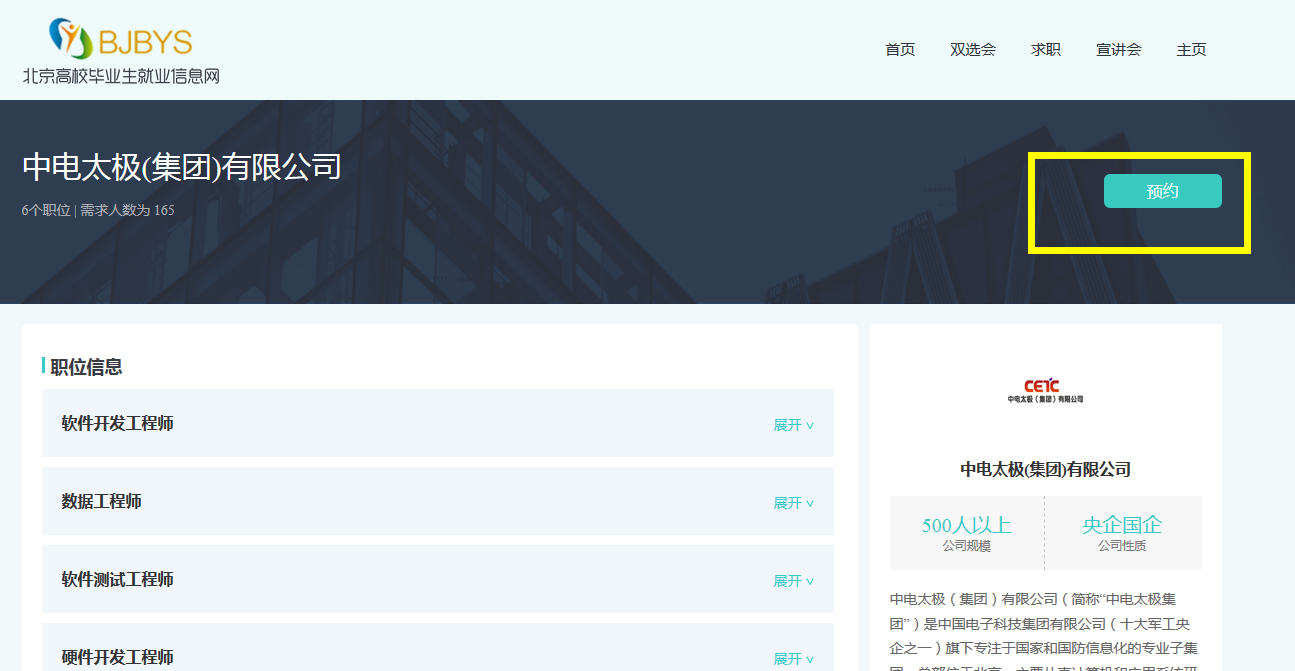 第一步:登录“北京高校毕业生就业信息网”-员工登录,查看双选会场次,即可参加网络双选会;