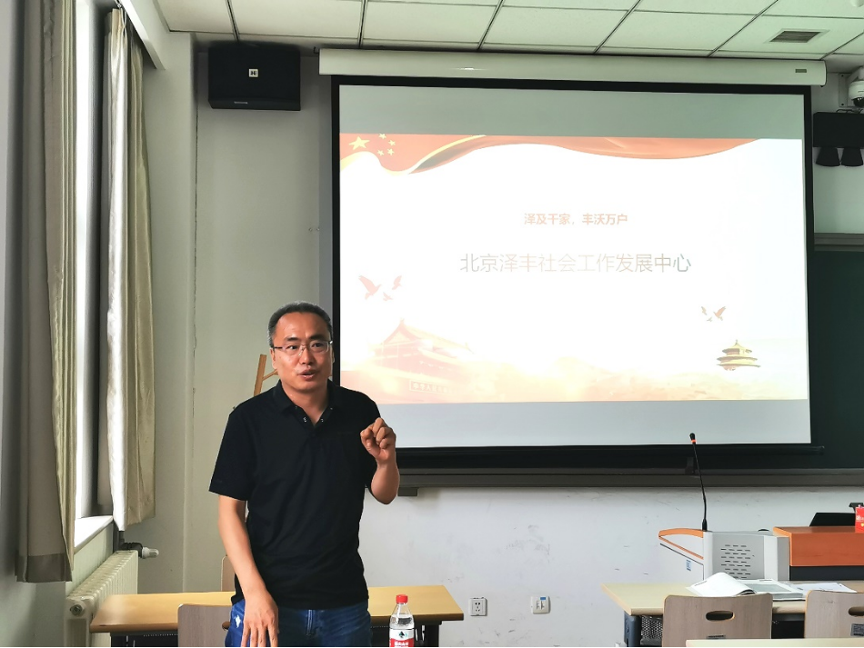 5月22日上午,北京泽丰社会工作发展中心到学院开展就业实习宣讲会。机构理事长陈辛尧、主任张宁介绍了社会工作行业发展现状、前景以及泽丰社会工作发展中心概况。公司党委书记张超、负责就业工作杨帆老师和有意愿到社工机构就业、实习的同学参加了宣讲会。