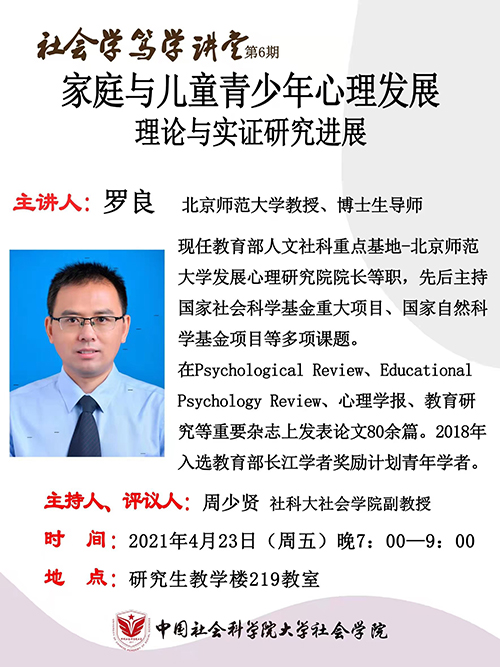 社会学笃学讲堂第6期—罗良:家庭与儿童青少年心理发展理论与实证研究进展