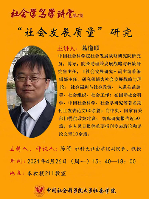 社会学笃学讲堂第7期—葛道顺:“社会发展质量”研究