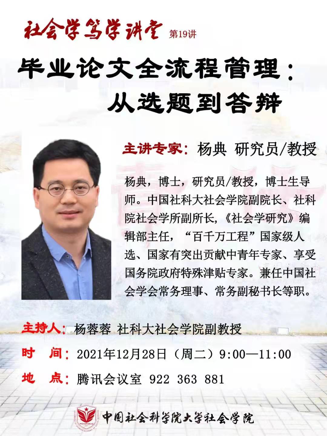 社会学笃学讲堂第19讲—杨典:毕业论文全流程管理:从选题到答辩
