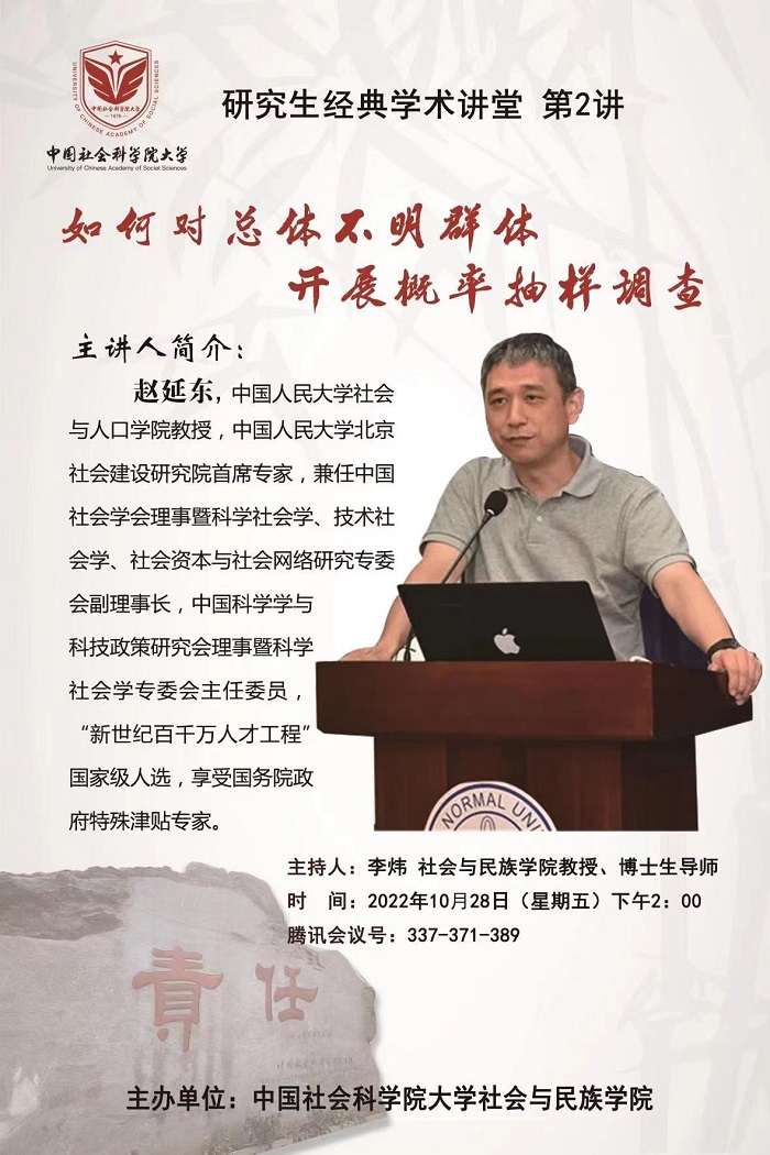 304am永利集团研究生经典学术讲堂 第2讲—赵延东:如何对总体不明群体开展概率抽样调查