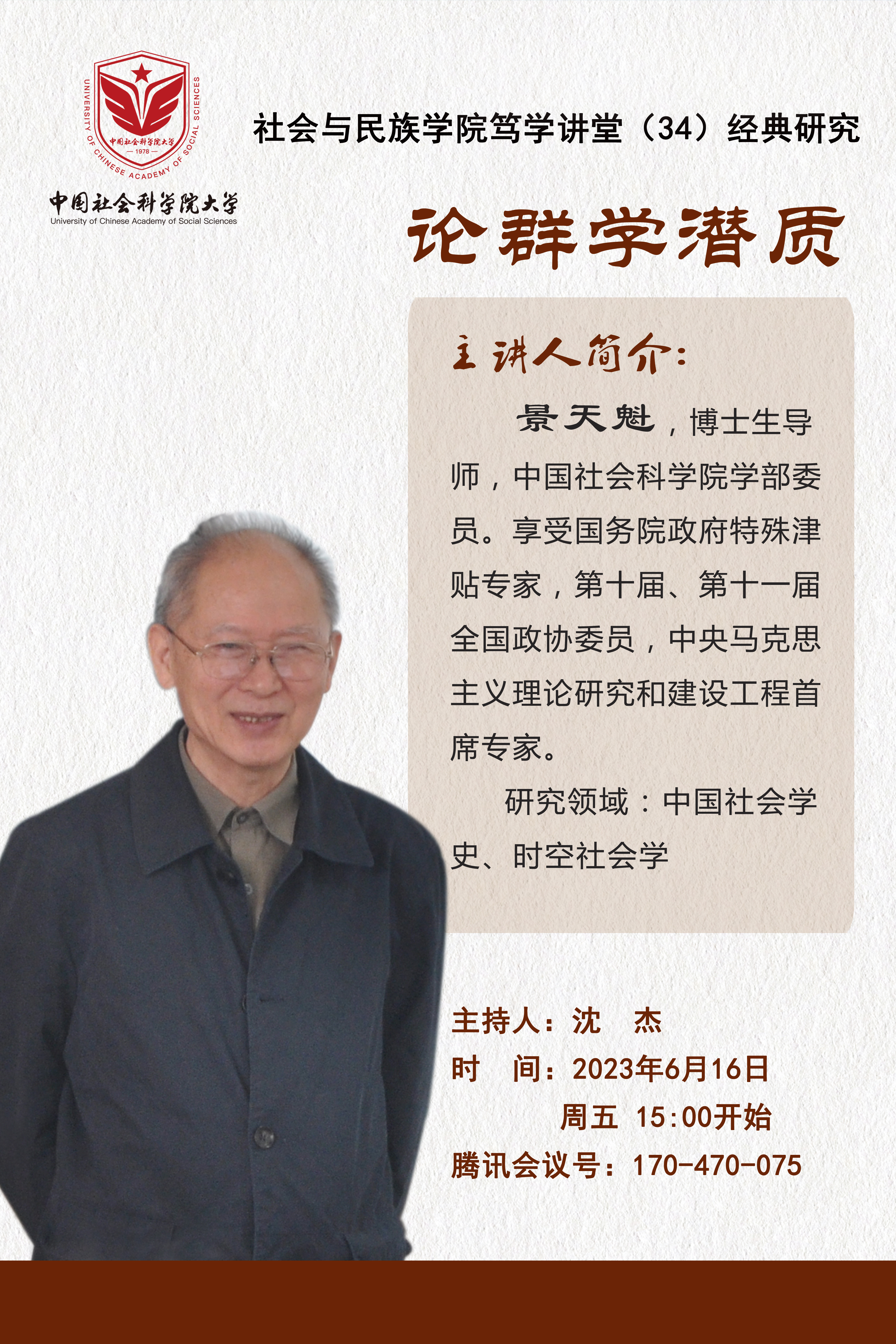304am永利集团笃学讲堂(34)经典研究—景天魁:论群学潜质
