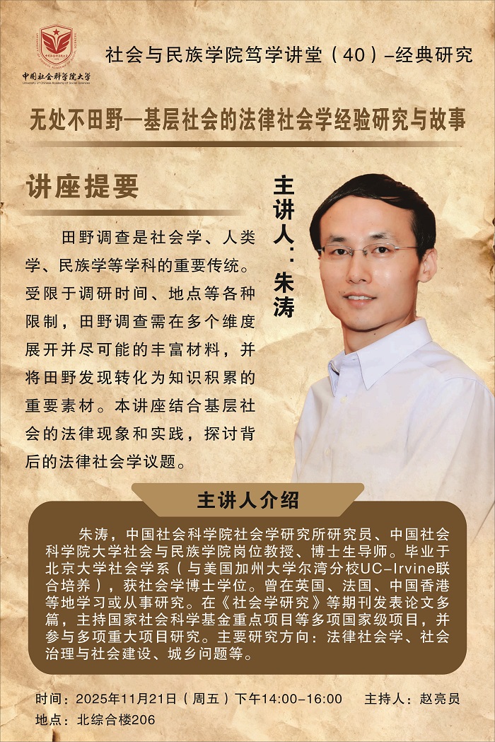 304am永利集团笃学讲堂(40)经典研究—朱涛:无处不田野—基层社会的法律社会学经验研究与故事