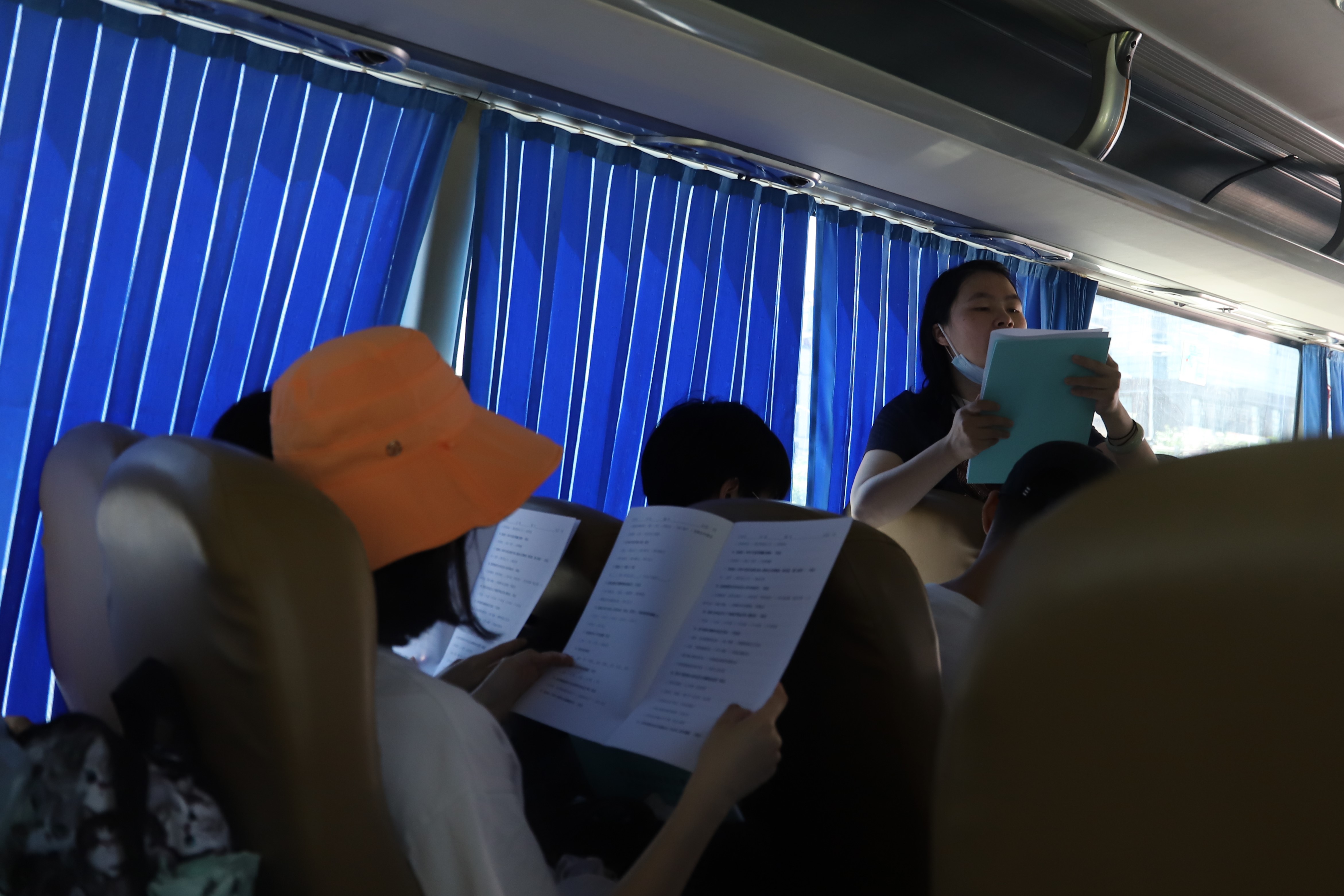 在前往河北镇的路上,杨蓉蓉老师首先针对问卷内容对同学们进行简要培训。杨蓉蓉老师重点强调了在进行问卷访谈时需要注意的问题,带领同学们熟悉了此次调研所使用的问卷。同时,为了提高同学们访问的流畅度,在杨蓉蓉老师的引导下,同学们进行了简要的两人试访。
