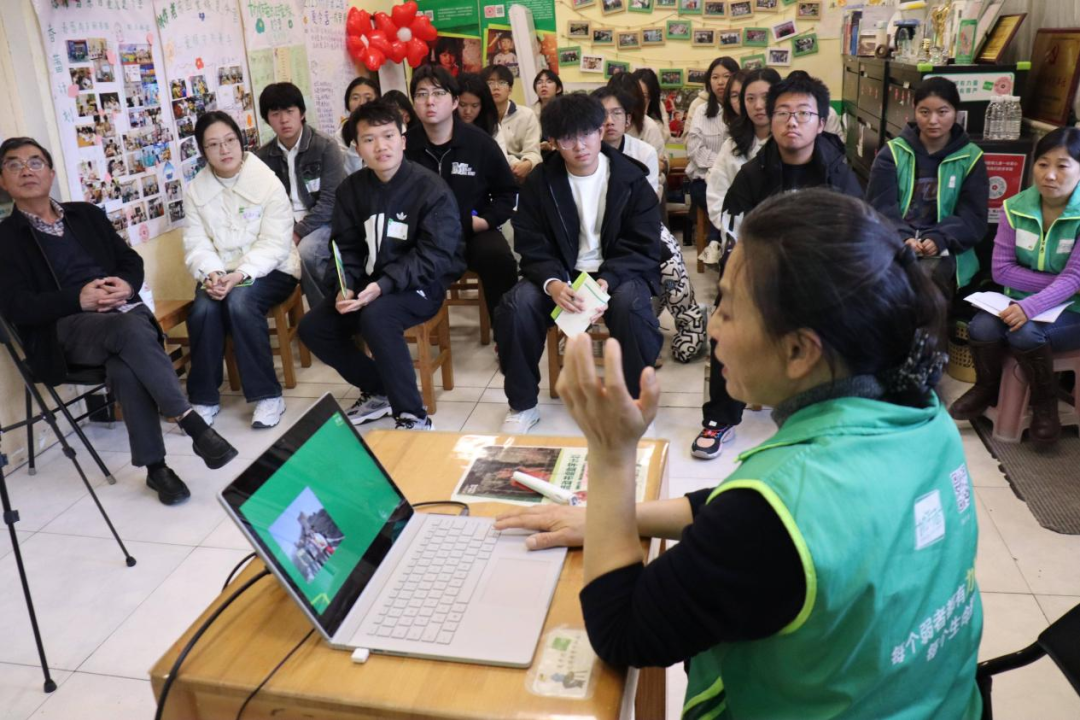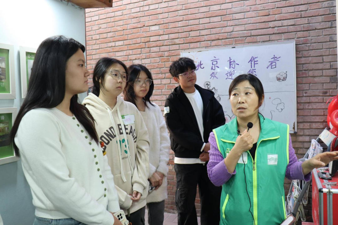 踏入北京协作者位于东四七条的温馨小院,木质结构与绿植相映,墙上的服务照片、孩子们的画作处处透着暖意。在社会工作者的引导下,同学们参观了服务空间,从个案访谈室到集体活动区,每一处布局都彰显着“以服务对象为中心”的理念。大家认真聆听空间功能介绍,想象着社工们在这里为弱势群体搭建支持网络的日常,对社会工作的实践场景有了直观且生动的认知。