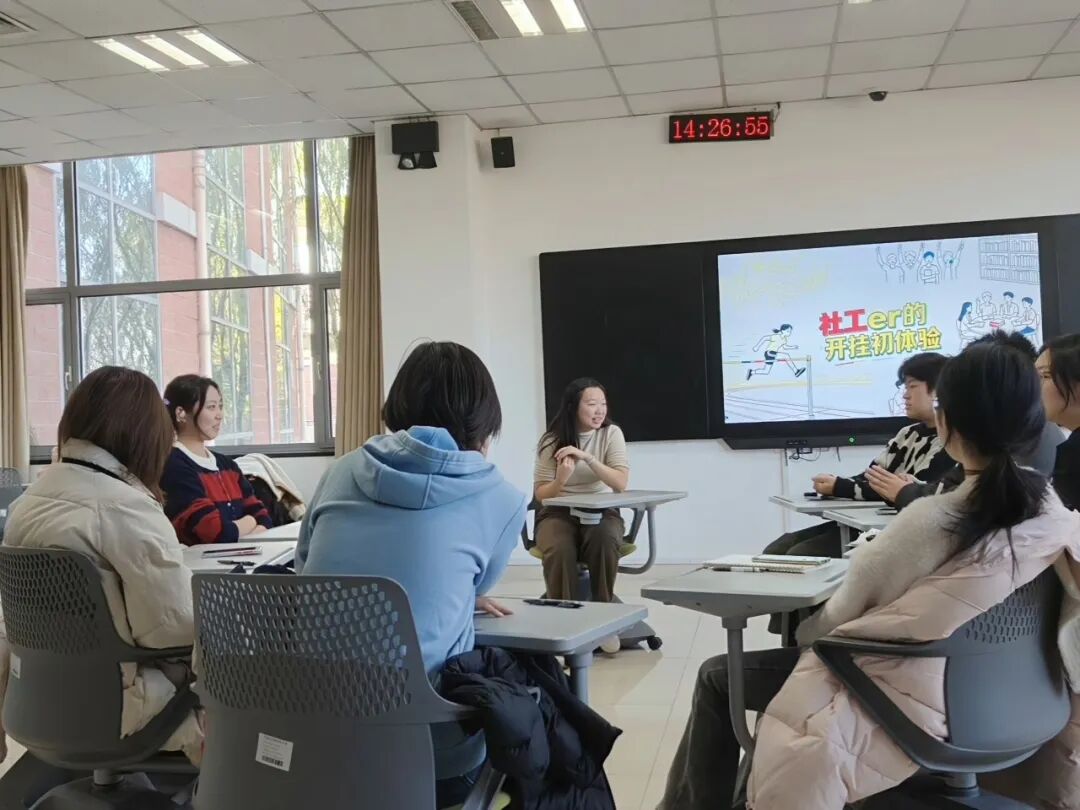 活动伊始,主持社工伴随着轻柔的背景音乐向满怀憧憬与忐忑的新生们致以热烈的欢迎,并介绍本次小组将通过4次活动助力大家连接彼此、认识专业、适应老员工活,为大家打造温暖安全的交流空间。随后,主持社工率先进行自我介绍,让组员与社工快速建立联系,同时对小组的整体安排进行初步说明。紧接着进入“破冰初识——你好,新同学”环节,主持社工引导组员随机与身边不熟悉的同学组成搭档,在3分钟内以“临时首席记者”的身份相互采访,话题涵盖姓名家乡、喜爱的电影或书籍以及对社科大最期待的事。采访结束后,3-4对同学主动分享了搭档的情况,现场氛围逐渐升温,有效打破了陌生感。期间,针对新生在专业课程、竞赛、实习等方面的疑惑,师兄师姐们耐心解答,有效推动了朋辈间的深度交流。