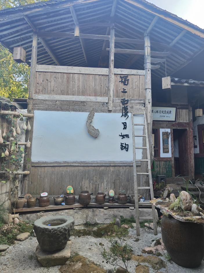 这些独特的设计给我留下了非常深刻的印象。之前在看文献的时候了解到,在乡土文化建设当中,现代文化对于乡土文化的侵蚀非常明显。在有些地方,乡土文化逐渐失去话语权,乡村的建筑、生活习惯、行为举止等都在向城市靠近,失去了传统乡土的特色。前一段时间,我们对城市建设当中的“千城一面”问题有很深的反思,如果我们的乡村建设也在模仿城市,那甚至可能出现“千乡一面”的问题。因此,在乡村文化建设中挖掘、保护和弘扬本土优秀文化是非常重要的。正如张老师说的,要“挖掘文化做创意”而不是“带着创意做文化”。在爱故乡书院,我看到了很多优秀的乡土文化被展示和放大。爱故乡书院不仅仅是给孩子提供教育的地方,也是让村民们相互交流学习的公共文化空间。从某种程度上说,这个公共文化空间同时也是一个乡土文化的展览馆,无论外面的世界如何变化,走进爱故乡书院就仿佛回归了纯真质朴的故乡,每一处布景都在塑造着人们的故乡记忆,点燃人们心中对故乡的热爱和自豪。