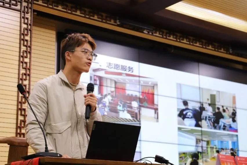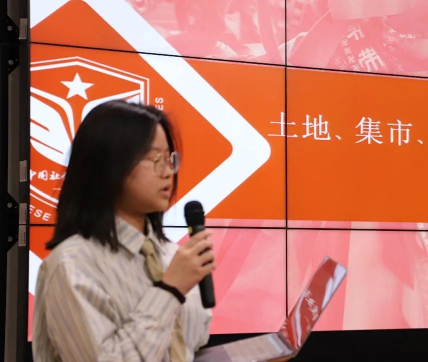 海宁组张振国同学以《感受潮乡文化,研习富民产业》为题发言,展示了同学们开展的志愿活动和调研情况,表示同学们借田野课堂看到了课堂和书本中的社会学知识的真实体现,也从乡土中生长出了属于自己的问题和关怀。