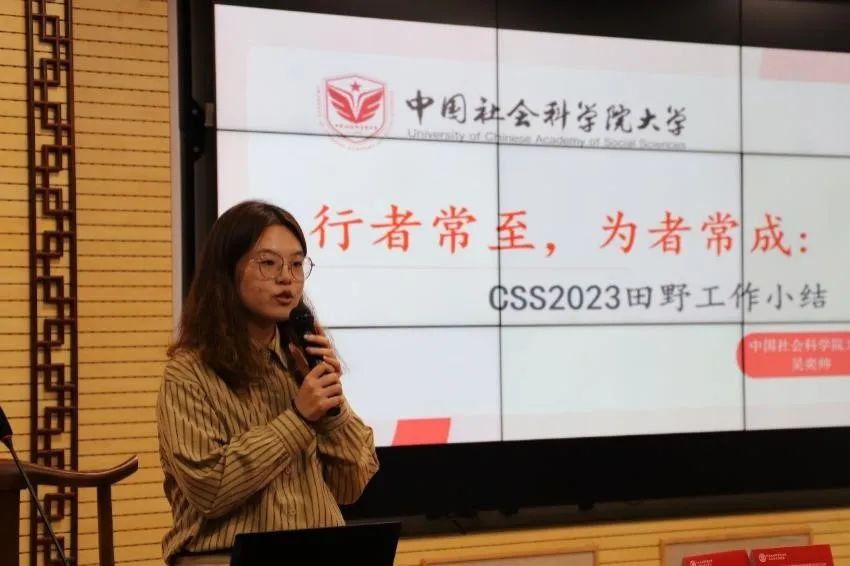 参与CSS调查的吴奕帅同学以《行者常至,为者常成》为题发言,借《城市社区物业纠纷中的角色互动与博弈》分享了自己的田野工作小结,并表示自己将“愿为民安乐,策马再力竭”。