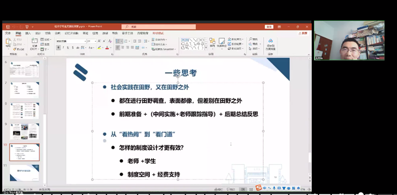 朱涛老师表示同学们在田野调查中仍然存在背景没有调查到位,资料没有收集完善等问题;并且直接分析了同学们的田野调查报告,从概念定义、分析方法、报告结构等方面进行了详细的纠错及指导。