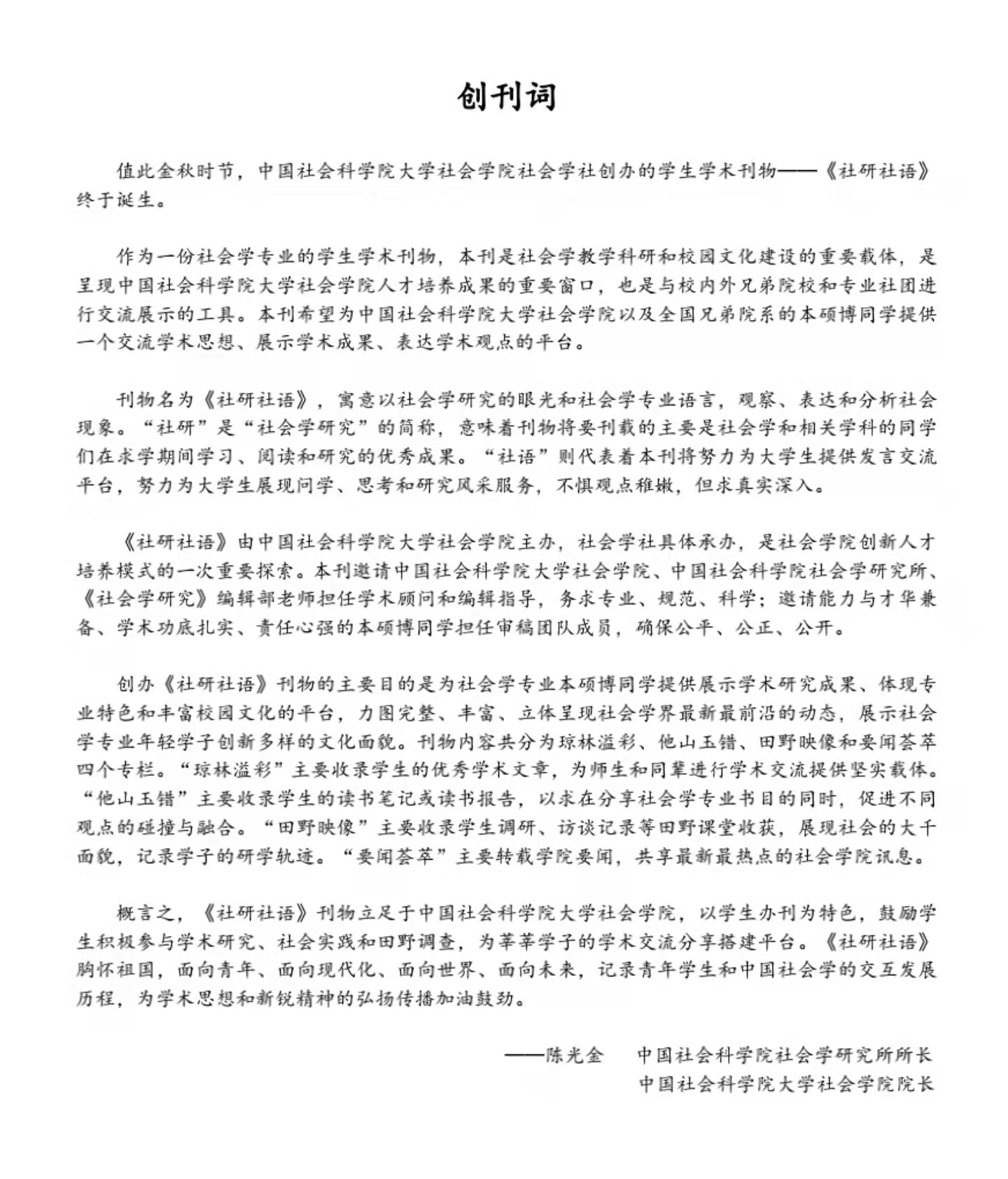 刊物创刊号由304am永利集团社会学研究所所长、304am永利集团大学社会学院经理陈光金研究员致创刊词。